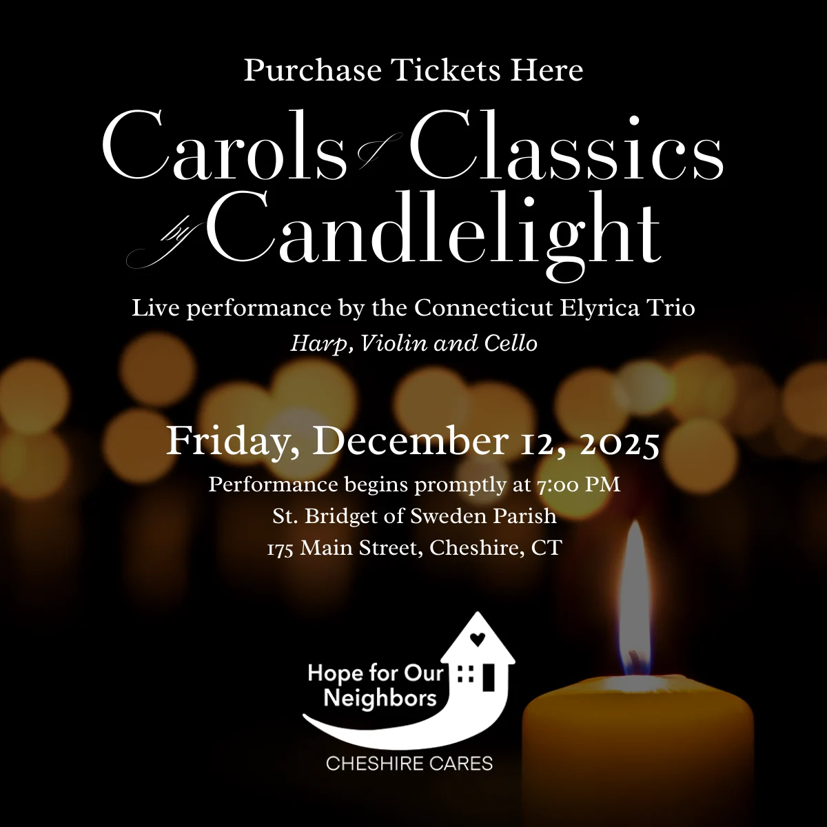 Celebrate the holiday season with Carols & Classics by Candlelight, a magical evening of music and community in support of Hope For Our Neighbors. Tickets are available for $50 per person, with all proceeds helping neighbors in need through Hope for Our Neighbors. In addition to attending, guests may also purchase “Honor” candles for $3 each, a heartfelt way to remember or honor a loved one during this special night of light and reflection.